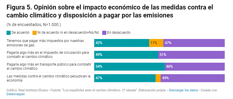 Mientras, "el 85% de los españoles opina que la electricidad que consumimos debe provenir de fuentes renovables, aunque esto implique tener grandes infraestructuras (parques eólicos o parques de energía solar fotovoltaica)". Lo desvela el estudio “Los españoles ante el cambio climático y la transición energética” del Instituto Elcano. En lo relativo a las centrales nucleares, el 43% de los encuestados afirma estar de acuerdo o muy de acuerdo en la extensión de su vida útil (34% y 9% respectivamente), una cifra notablemente superior a la de la encuesta de 2019 (que era del 24%). Sobre la aceptación de parques solares y eólicos la pregunta sería, ¿y si las ponemos al lado de tu casa, en tu pueblo? Las poblaciones que los rechazan en ocasiones tienen sus argumentos.