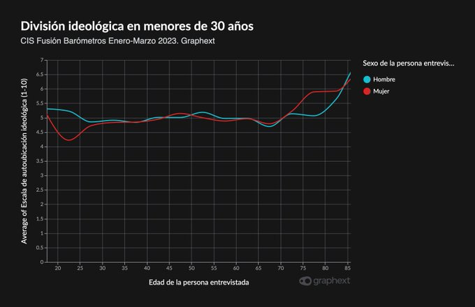 En España, Victoriano Izquiero lo ha reflejado gráficamente a partir de datos del CIS. Un punto interesante adicional en nuestro país es que las abuelas son más de derechas respecto a sus nietas que nunca.