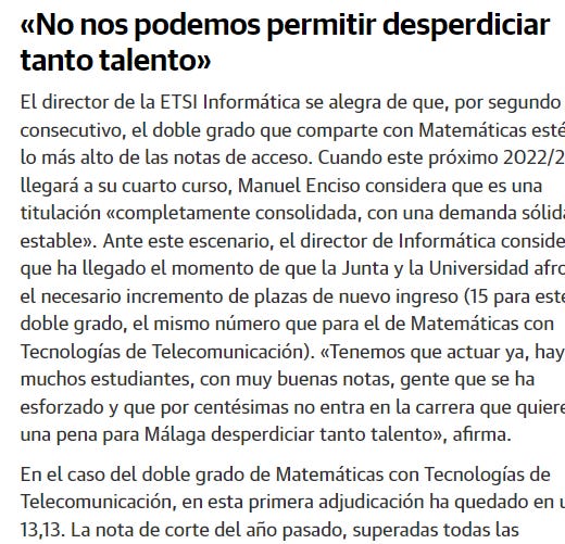 Notas de corte en la universidad. Las notas de corte en algunas carreras y, sobre todo, en los dobles grados están siendo muy altas debido a las pocas plazas ofertadas. Francisco Gutiérrez en Sur sobre el caso de Málaga